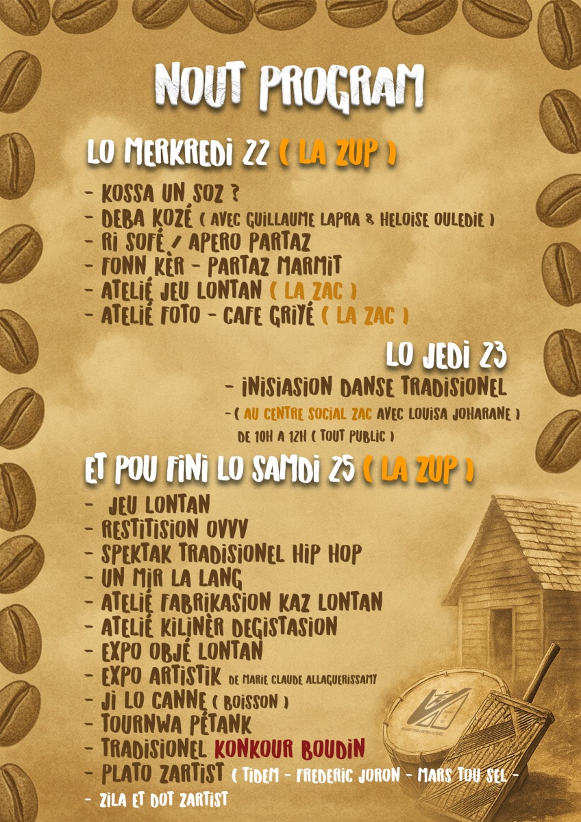 À l’occasion de la Somen Kreol, retour sur le projet Détak Kréol qui célèbre la richesse de l’expression en créole réunionnais. Lors de six ateliers itinérants avec des habitants de tout âge, et de plusieurs quartiers, ont été initiés à l’écriture en créole, en s’inspirant de sirandanes et d’expressions populaires.Nous publions ci-dessous le post de la ville du Port à ce sujet, ainsi que le programme de la Somen Kréol. (Photo : ville du Port)