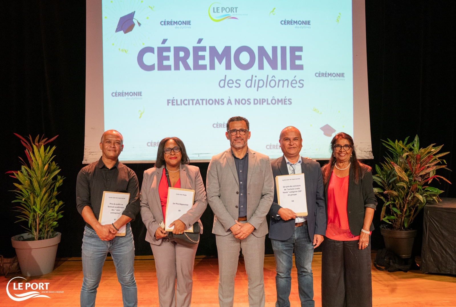 La cérémonie des diplômés du Port s’est tenue mardi 15 juillet 2025 au Kabardock. Organisé par la municipalité, l’événement a mis à l’honneur les nouveaux titulaires du baccalauréat, de CAP, BEP, BTS ou diplômes universitaires, ainsi que les lauréats des concours académiques. Le maire Olivier Hoarau a salué des parcours inspirants, comme celui de Florence Bulin, 54 ans, diplômée d’un CAP petite enfance, célébrée aux côtés de sa fille, elle-même bachelière. Nous publions le post de la ville du Port ci-dessous. (Photo : ville du Port)