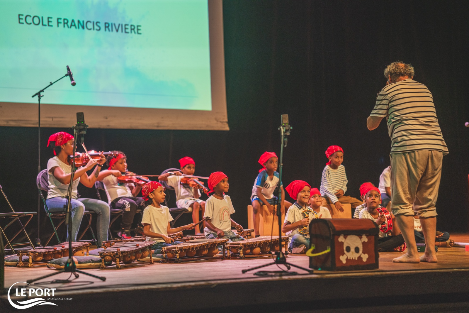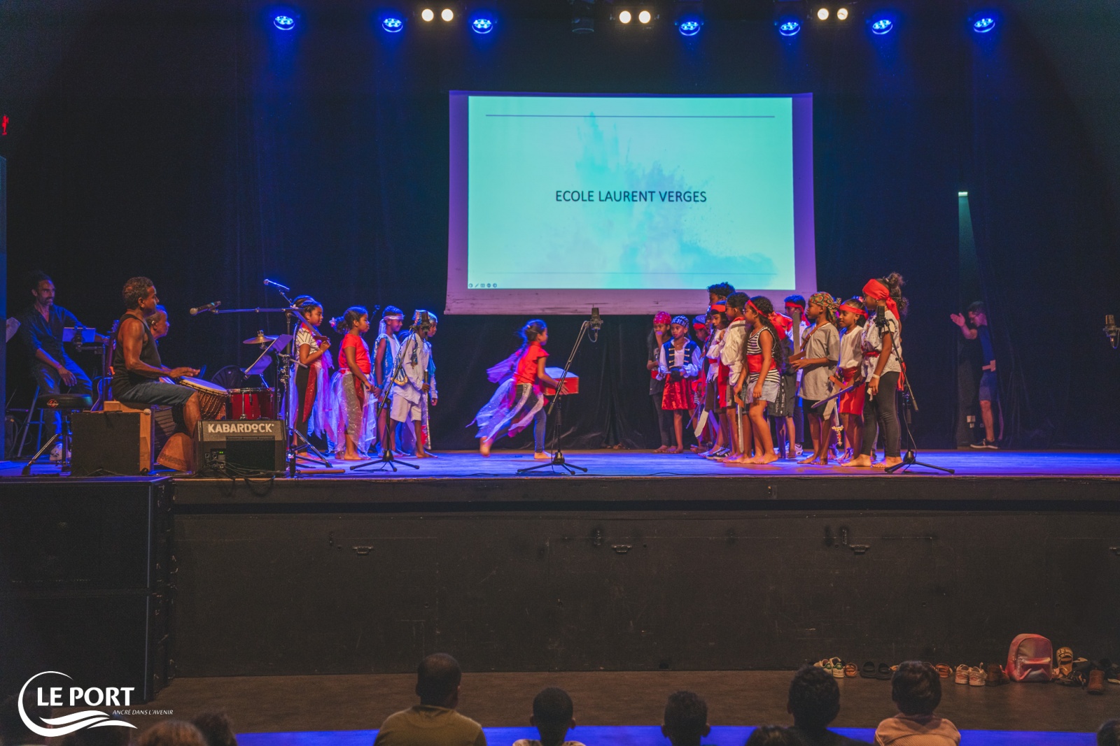 Le mardi 29 avril 2025, des élèves portois de 14 classes ont chanté et joué sur la scène du Kabardock lors d’ateliers menés par Claude Quipandédié (percussions), Mathias Vienne (chant), Eric Le Louvier (sound painting) et les enseignants. Chaque classe a bénéficié de six à huit séances avec les intervenants avant de présenter une courte prestation lors de la journée de restitution. Nous publions le post ci-dessous. (Photo : Mairie du Port)