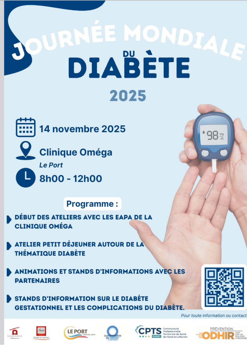 Cette journée sera rythmée par des actions de prévention et de sensibilisation autour du diabète : ateliers théoriques et dépistages avec la Karavan Odhir et l’équipe de la CPTS Ouest ; focus médical sur la prise en charge du diabète gestationnel ou encore prévention des complications liées à la pathologie.