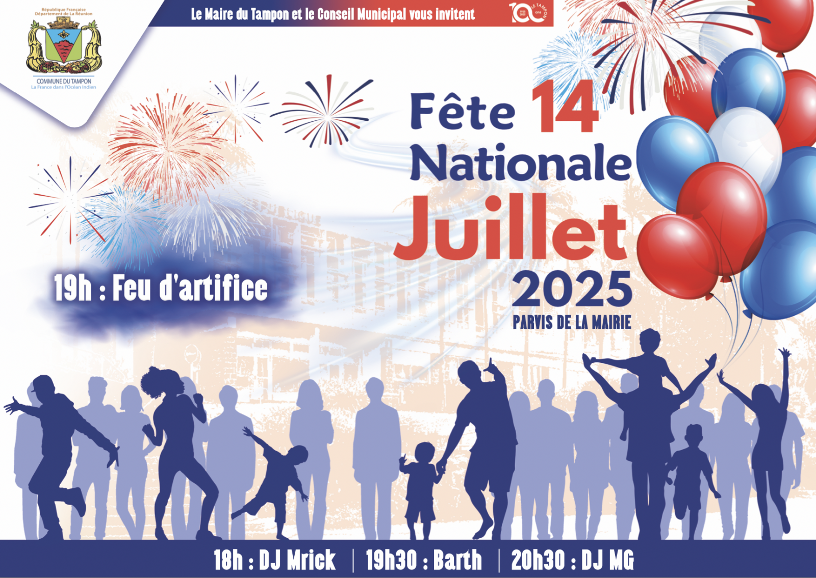 Ce lundi 14 juillet 2025, la ville du Tampon célèbre la fête nationale sur le parvis de l'hôtel de ville. De nombreux artistes seront présents dès 18h avec DJ Mrick, Barth ou encore DJ MG. Et à 19h, le traditionnel et spectaculaire feu d’artifice sera tiré depuis le parvis de l’Hôtel de Ville. Un événement à ne pas louper (Photo : sly/www.imazpress.com)