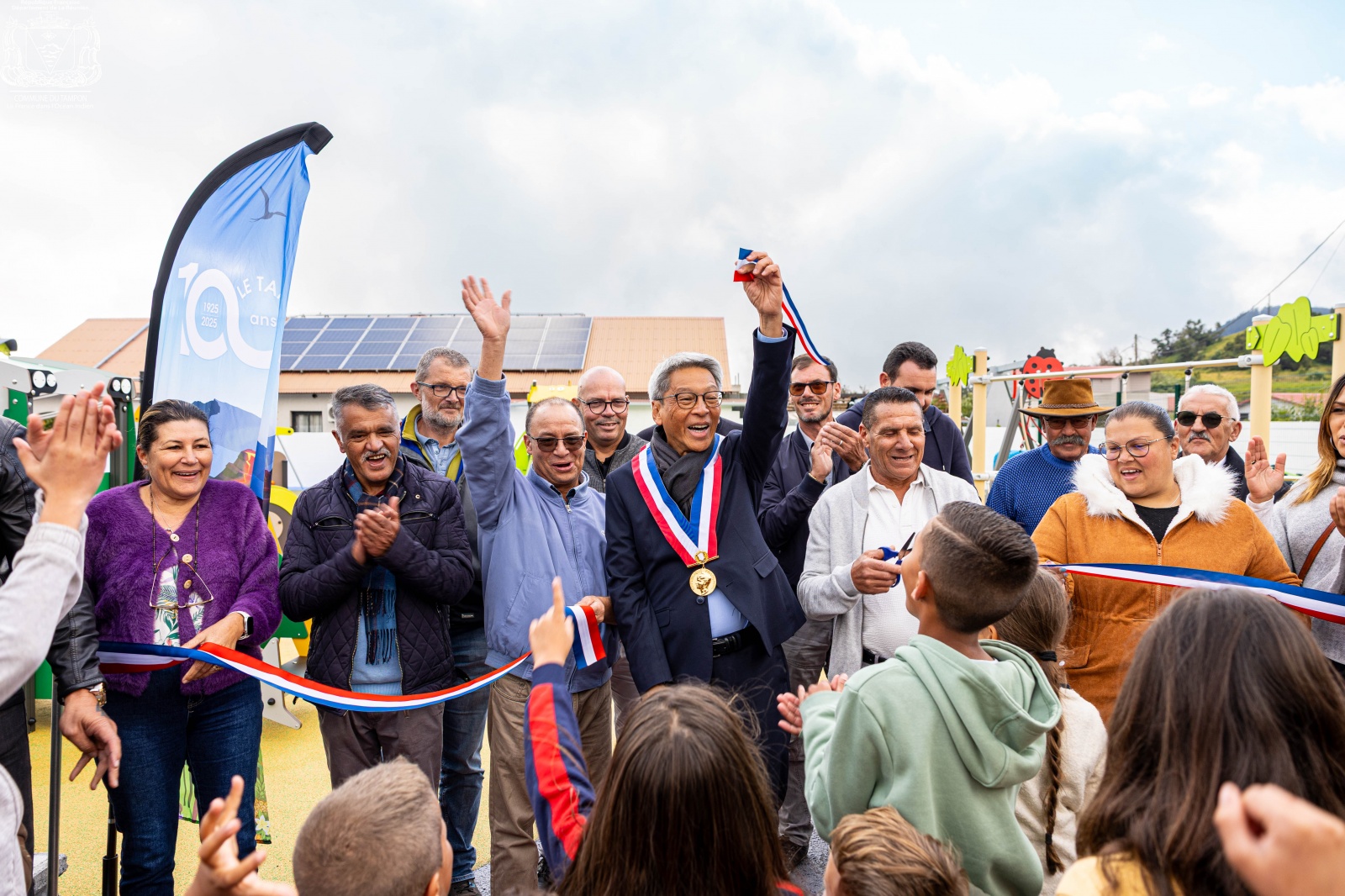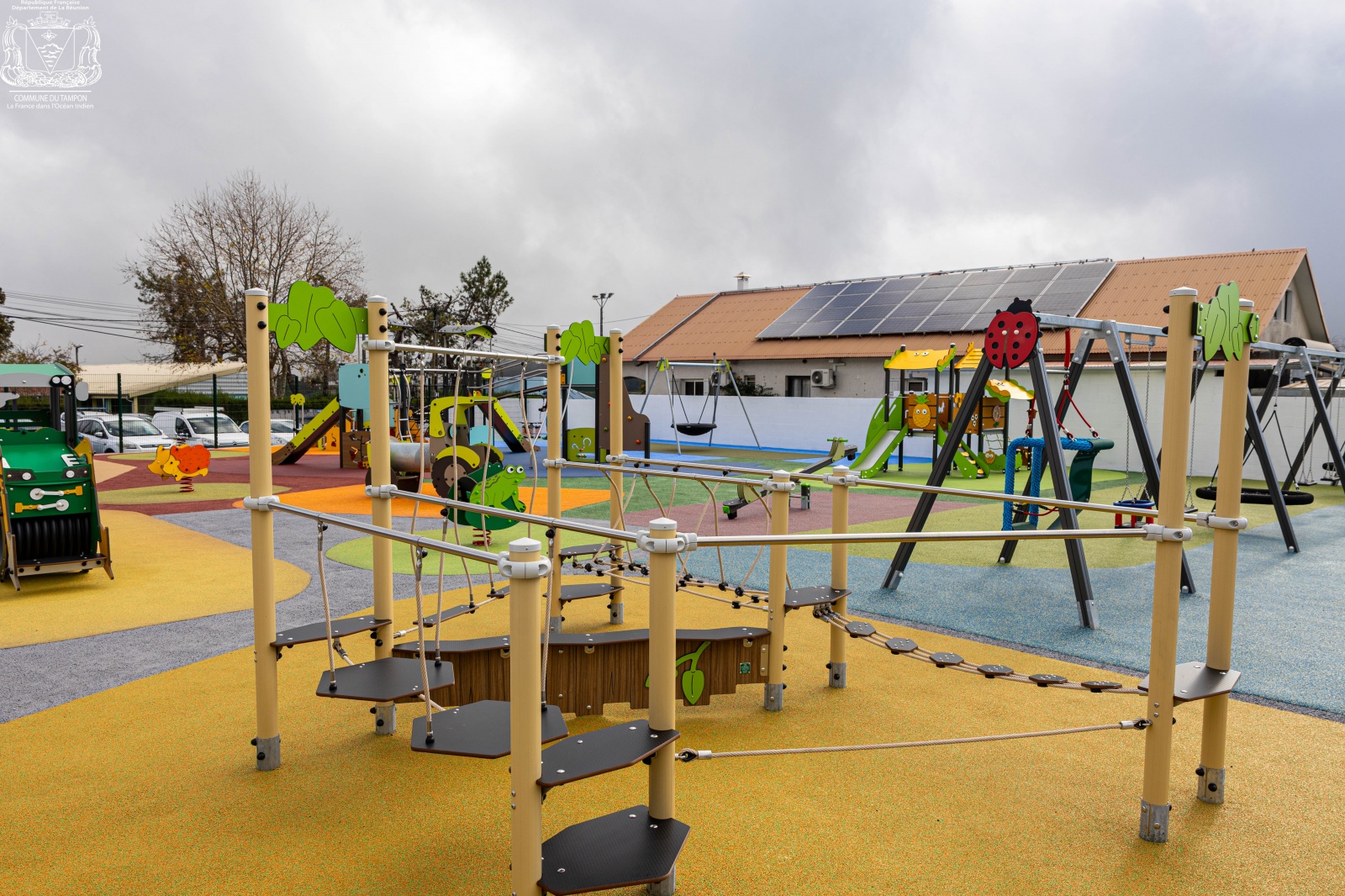 Mardi 24 juin 2025, la commune du Tampon a inauguré après six mois de travaux, la 29ème aire de jeux de la ville à la Grande Ferme, en face de l'école primaire Paul Odilien Picard (Photo : ville du Tampon)