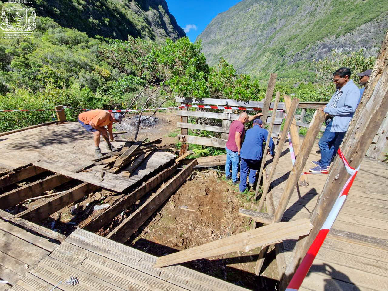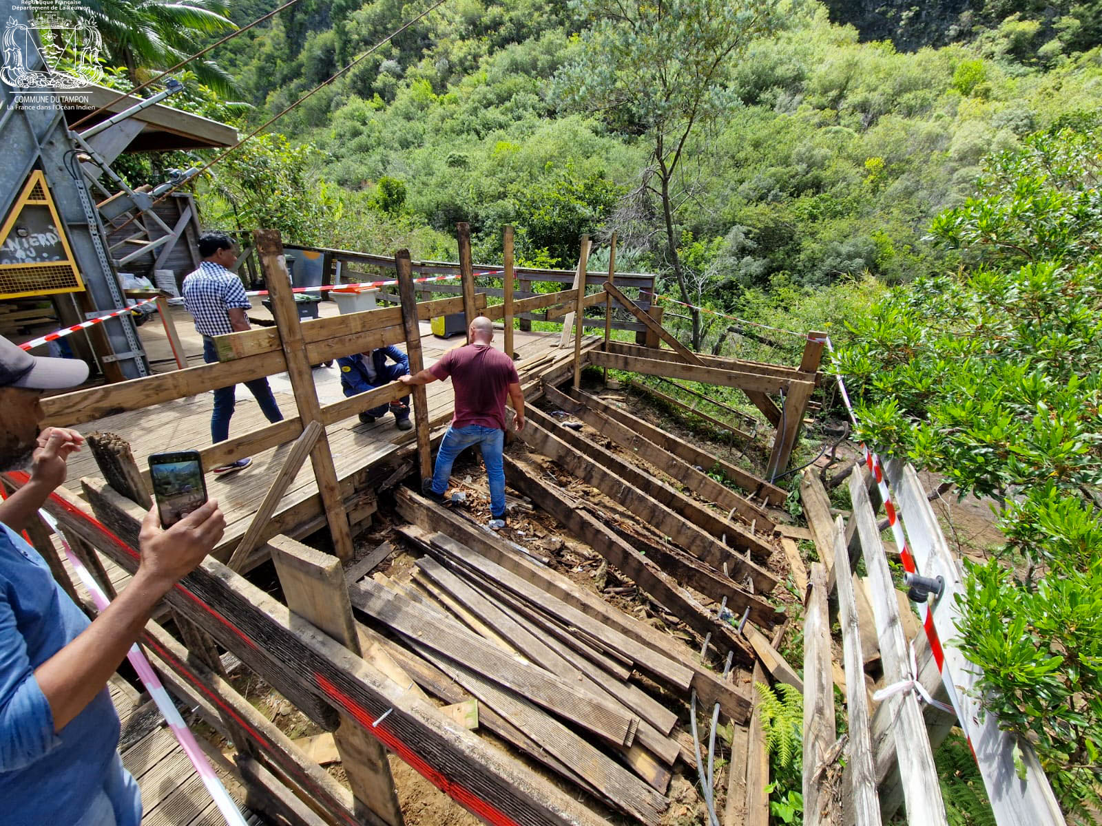 Ce jeudi 5 décembre 2024, des agents techniques de la ville du Tampon se sont rendus dès 7 heures du matin à Grand Bassin pour procéder aux travaux de réparation de la plateforme du monte-charge. Il y a quelque jours, les habitants de Grand Bassin alertaient sur le piteux état de cette dernière. Après plusieurs heures de travail, la plateforme est à présent sécurisée et opérationnelle (Photos : Le Tampon)