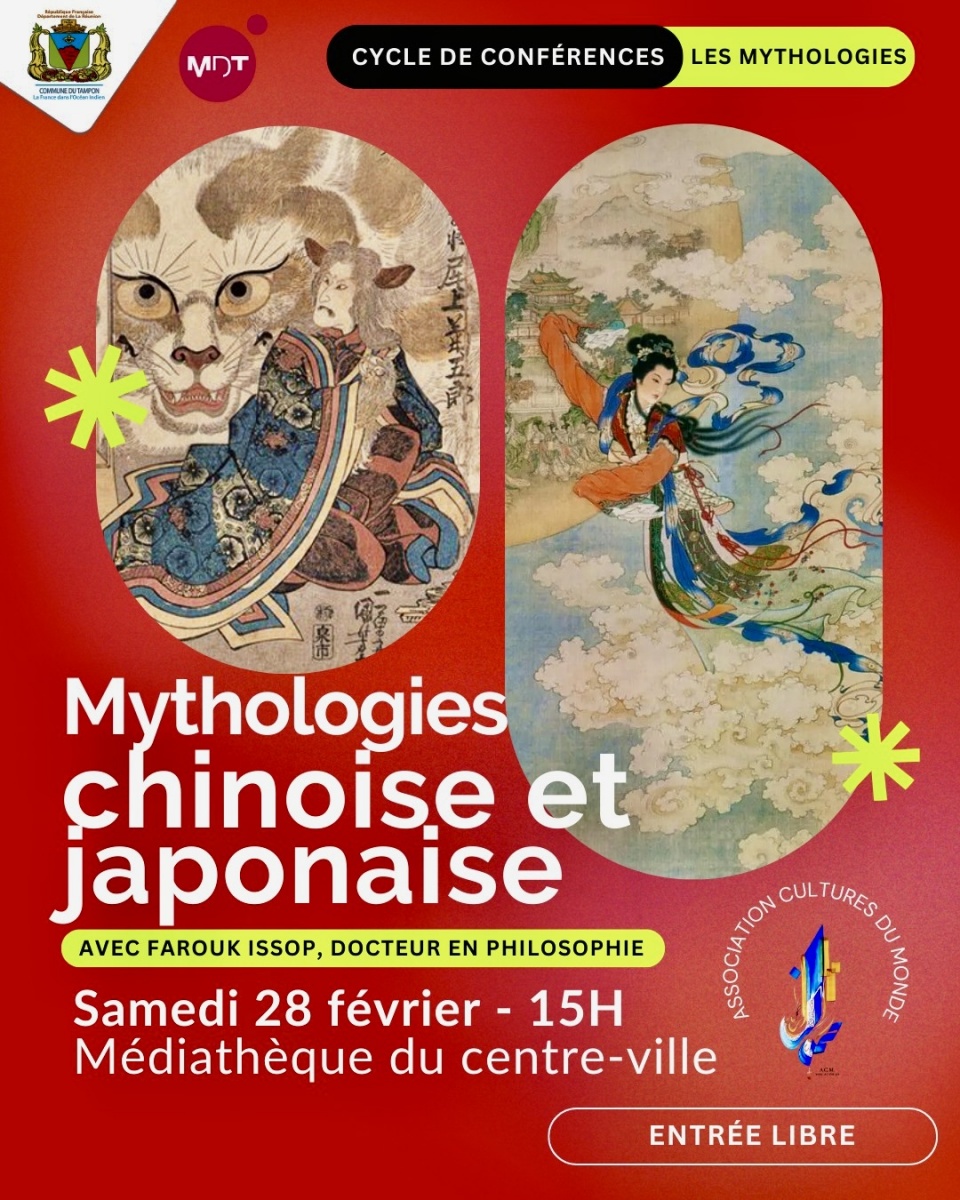 À l’occasion du Nouvel An chinois, l’association Cultures du monde et la médiathèque du Tampon organise une conférence consacrée aux mythologies chinoise et japonaise. Cette rencontre mettra en lumière leurs grandes figures, leurs récits d’origine et leurs fonctions culturelles. Nous publions ci-dessous le communiqué.