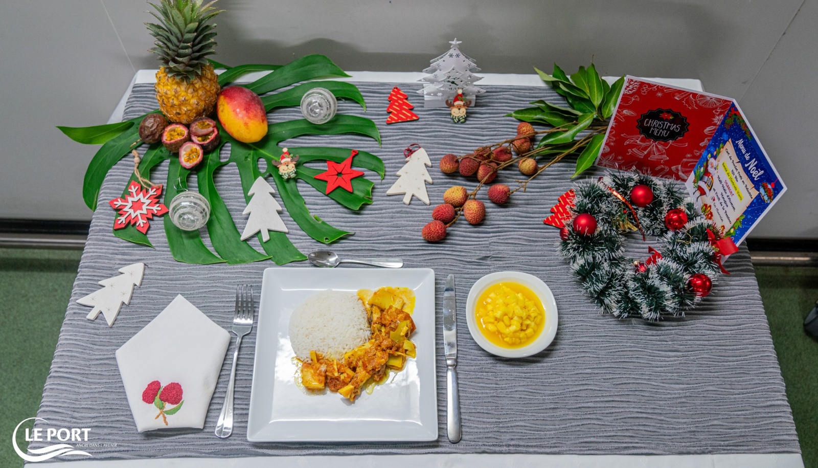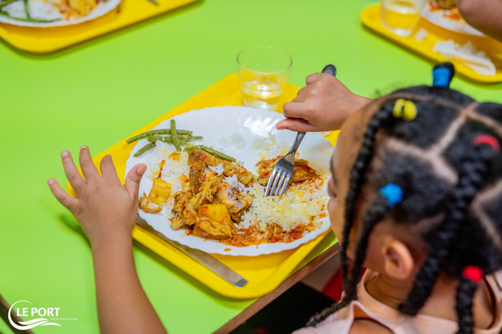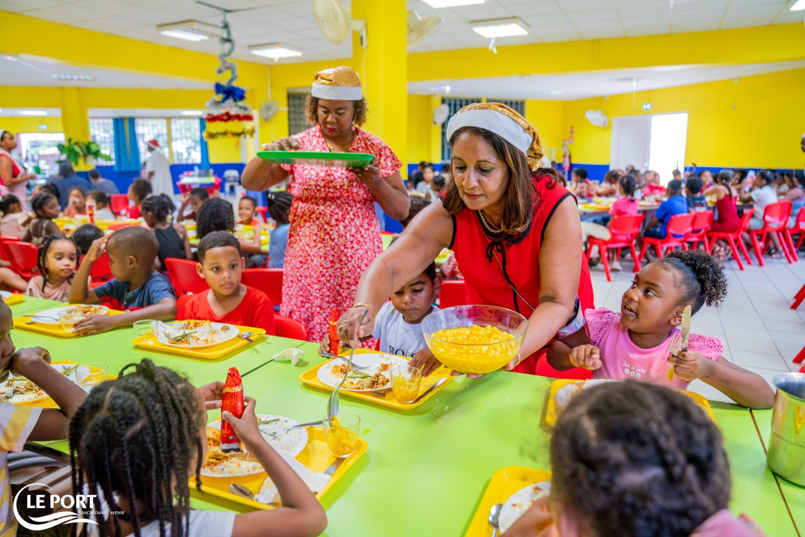 Ce jeudi 7 décembre 2023, Noël s'est invité dans les assiettes des écoliers portois. Les chefs du service restauration scolaire de la ville du Port ont imaginé un menu traditionnel des repas de fêtes de La Réunion. Au menu, cari de poulet frais au palmiste, riz bio, sauté de haricots verts, fruits et chocolat pour le dessert. Dans l'école Camille Macarty l'adjointe au maire, Annick Le Toulec s'est joint à la partie. (Photos de la Mairie du Port).