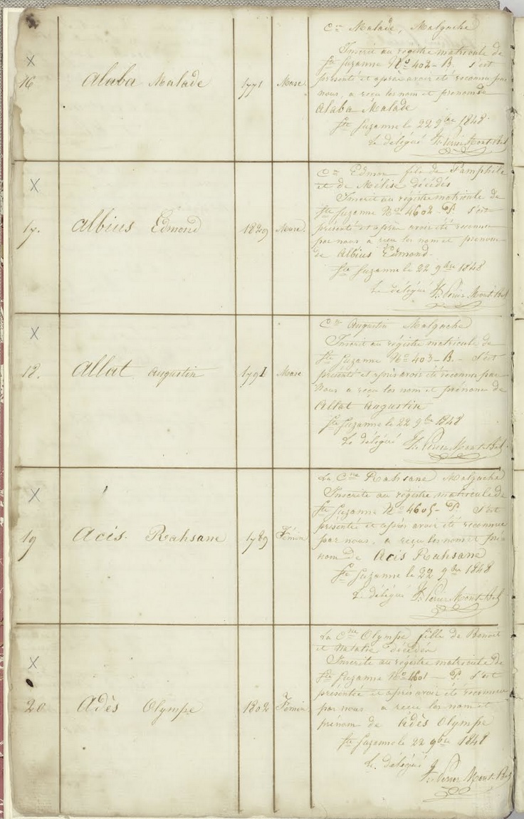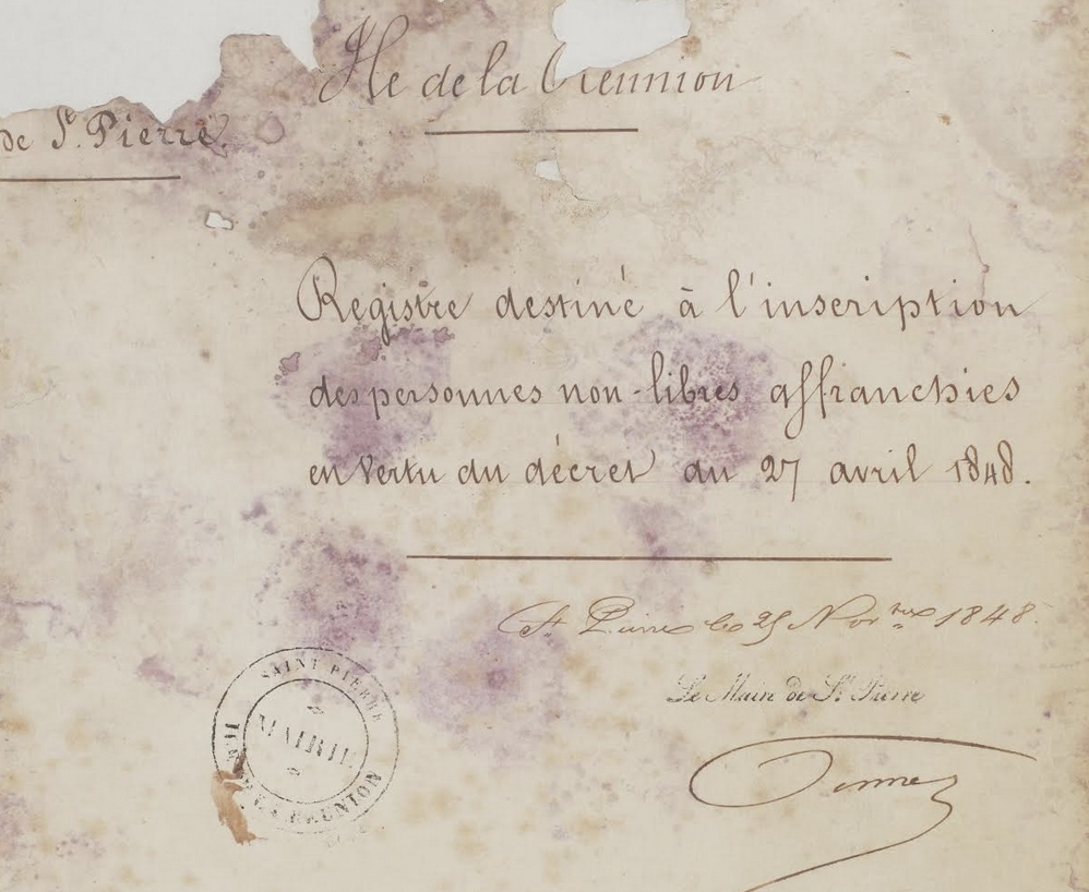 Les Archives départementales de La Réunion ont entamé depuis des décennies des travaux de classement, de restauration, de numérisation, de valorisation de ces ensembles : les registres d’affranchissement tenus depuis 1832 et les registres spéciaux de 1848 sont disponibles en ligne, accessibles et appropriables par tous.
