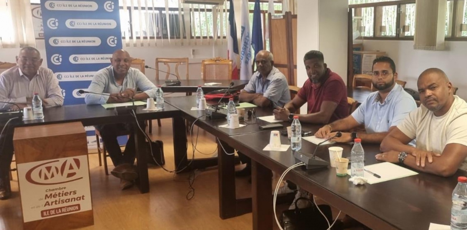 Suite au mouvement de grève du jeudi 28 décembre 2023, l'intersyndicale des taxis de La Réunion a été reçue le vendredi 29 décembre 2023 au siège de la Chambre de Métiers et de l'Artisanat par Bernard Picardo, Président de la Chambre de Métiers et de l'Artisanat, et Pierrick Robert, Président de la Chambre de Commerce et d'Industrie de La Réunion.