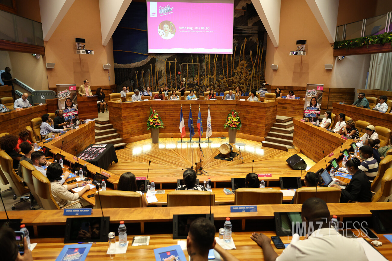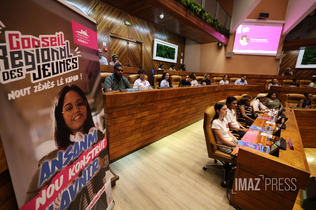 Lancé le 17 septembre, le Conseil Régional des Jeunes (CRJ) a officiellement été installé ce mercredi 15 octobre 2025, à l'occasion d'une plénière. Avec ce nouveau dispositif, la collectivité souhaite donner la parole à la jeunesse réunionnaise. Prochaine étape pour le CRJ : participer à la Commission Cohésion Sociale et Solidarité en novembre prochain. (Photos sly/www.imazpress.com)