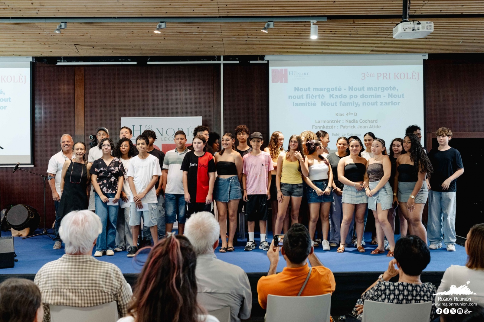 Ce mardi 28 avril 2026, le site régional du Moca à Montgaillard, a accueilli la cérémonie de remise de prix de la huitième édition du "Pri honoré pou lékol" 2026, en présence de la présidente de Région Huguette Bello et du président du conseil de la culture, de l'éducation et de l'environnement (CCEE), Roger Ramchetty. Cinq cent élèves du CP à la terminale étaient présents pour cet évènement qui "met à l’honneur la lang kréol en valorisant la créativité, l’expression écrite et l’attachement des jeunes générations à leur identité culturelle", explique la Région. (Photos : Région Réunion)