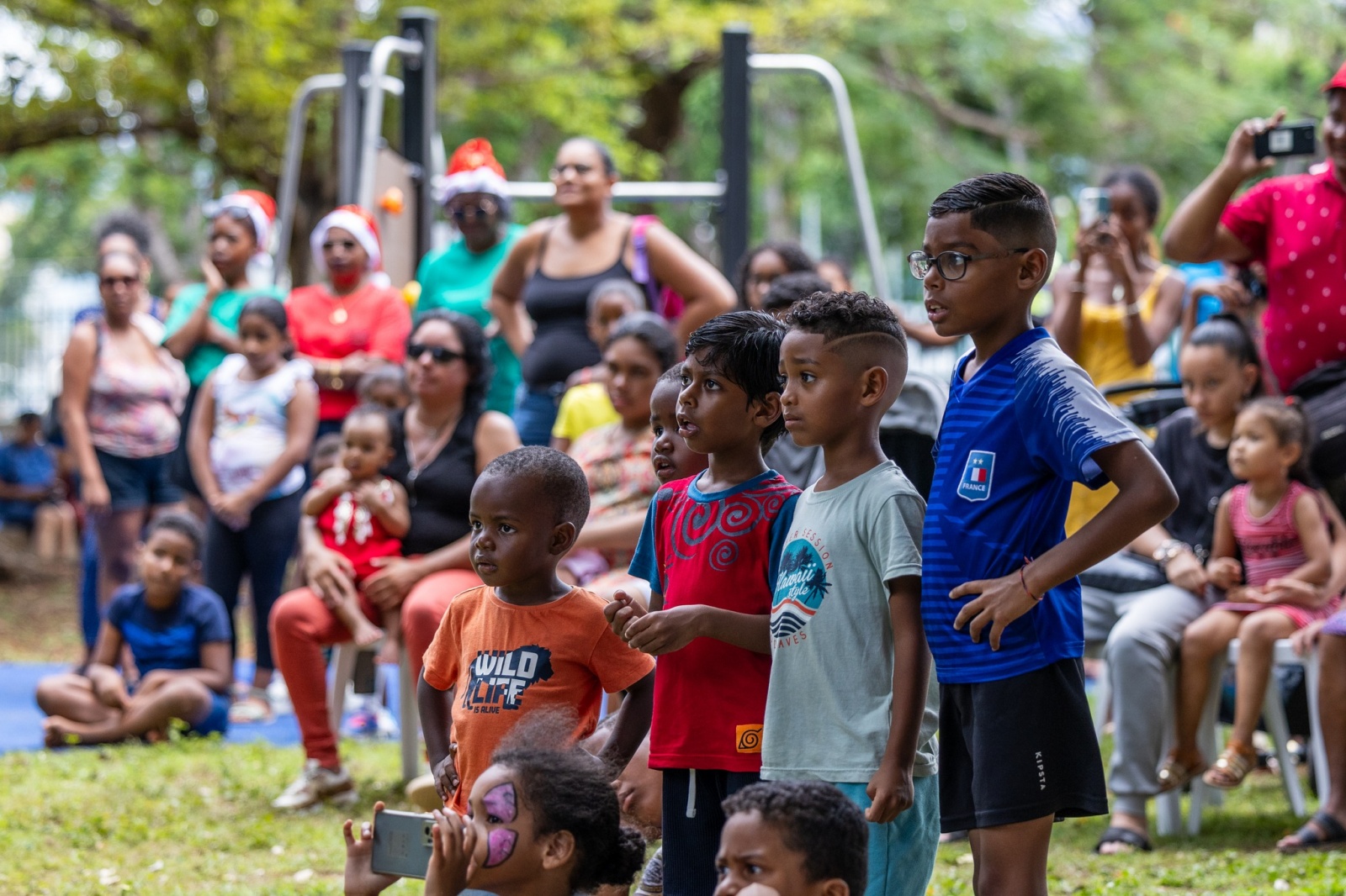 Samedi 16 décembre 2023, le Jardin Fleuri du Chaudron s'est métamorphosé "en un paradis enchanté pour l’Arbre de Noël des marmailles" note la mairie de Saint-Denis. Maquillage, ateliers de dessins, structure gonflable, et encore distribution de cadeaux par nul autre que le Père Noël en personne (Photo : Mairie de Saint-Denis)