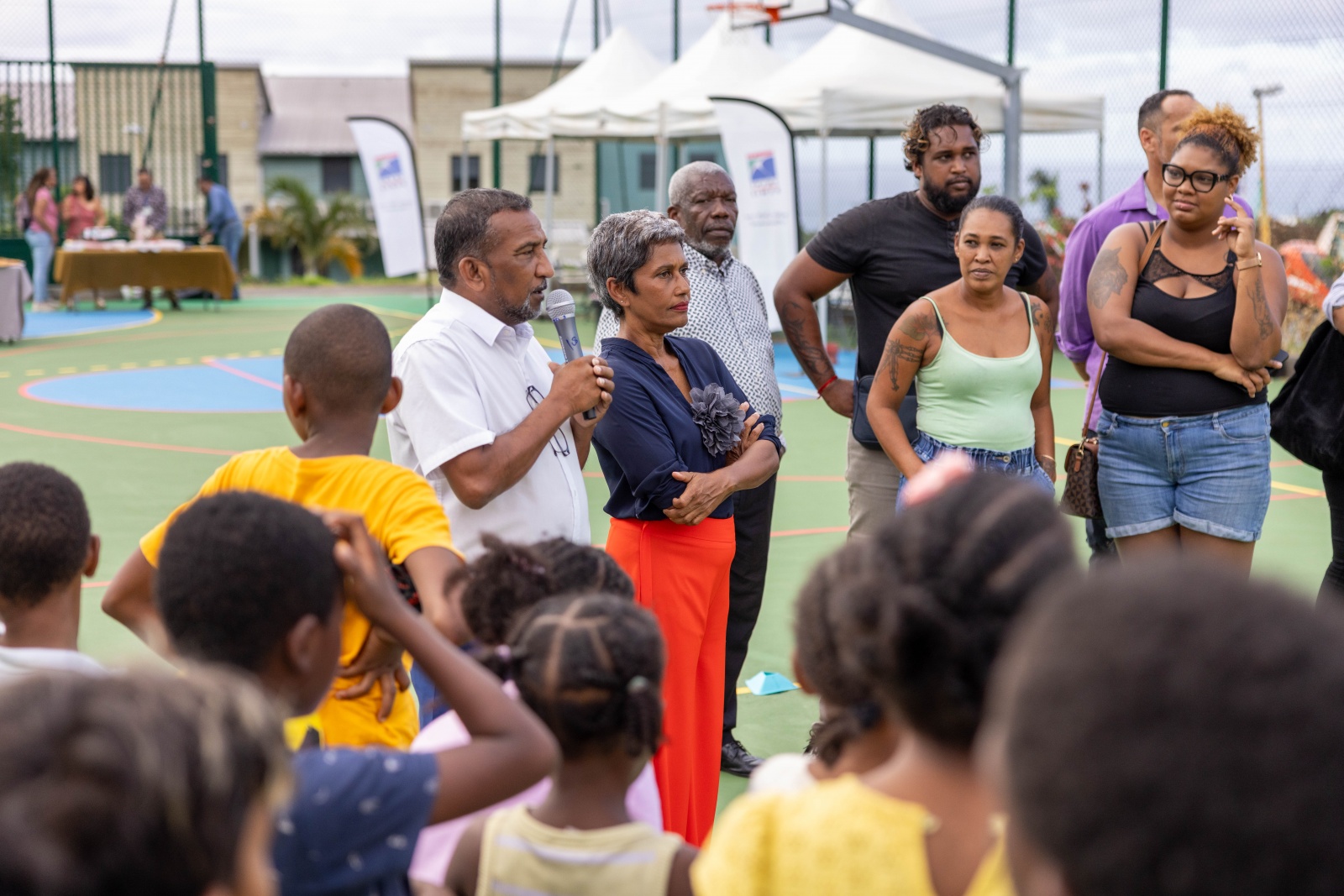 Ce chantier, lancé en avril 2022, a été financé par le Fonds Européen d’investissement à hauteur de 400.000 euros et par la ville de Saint-Denis pour 100.000 euros. Il comprend la réfection complète des clôtures périphériques, la pose d’un revêtement acrylique neuf, ainsi que l’installation de nouveaux équipements sportifs, tels que des buts de football et des panneaux de basket.