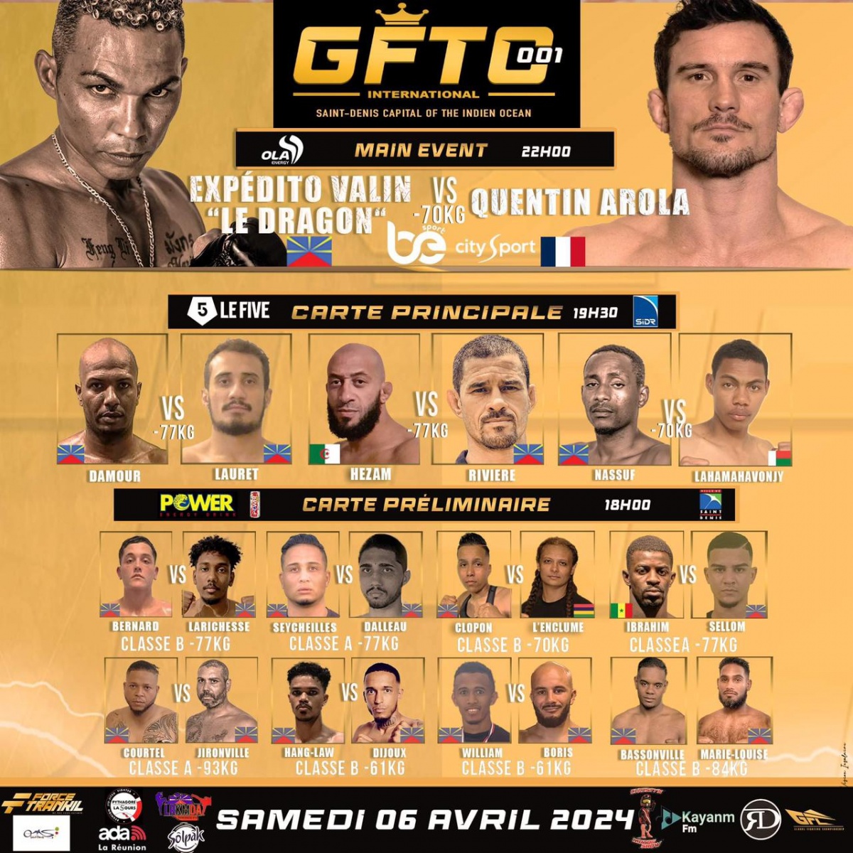 Le dimanche 6 avril 2024, au Gymnase Champ-Fleuri de Saint-Denis aura lieu la première rencontre professionnelle de pancrace à La Réunion organisé par la GFTC. Pour l'occasion la fight card a été dévoilé avec pas moins de six nationalités qui s'affronteront dans un total de douze combats (Photo : GFTC)