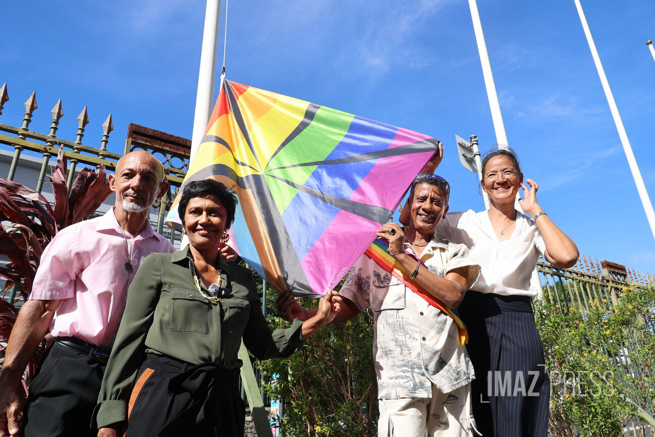 Ce vendredi 17 mai 2024, débute le mois des visibilités (qui se déroulera jusqu'au 25 juin). À cette occasion, la mairie de Saint-Denis a procédé a la levée de drapeau arc-en-ciel officiel à l'ancien hôtel de ville du chef-lieu. La maire, Ericka Bareigts, était accompagnée de Guillaume Kichenama, élu à la ville, délégué à la lutte contre les discriminations (Photos : rb/www.imazpress.com)