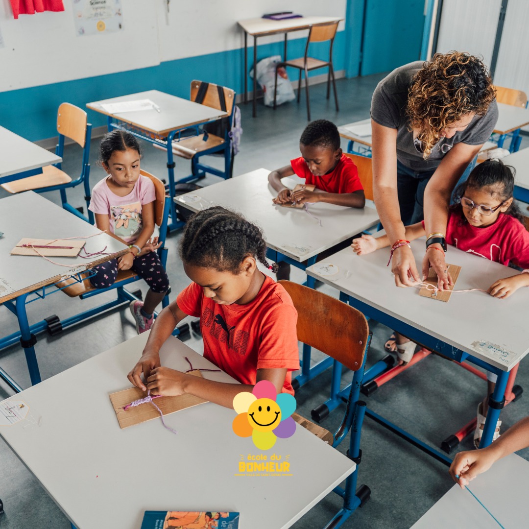 Les enfants d'école élémentaire Topaze ont profité de leur temps libre à la pause méridienne pour participer à un atelier tressage et noeuds. Une activité qui demande concentration, chaque fil devient des oeuvres d'art uniques. Les marmailles ont pu laisser libre cours à leur imagination et partager un moment créatif. Nous partageons la publication de la ville de Saint-Denis. (Photo : Saint-Denis)