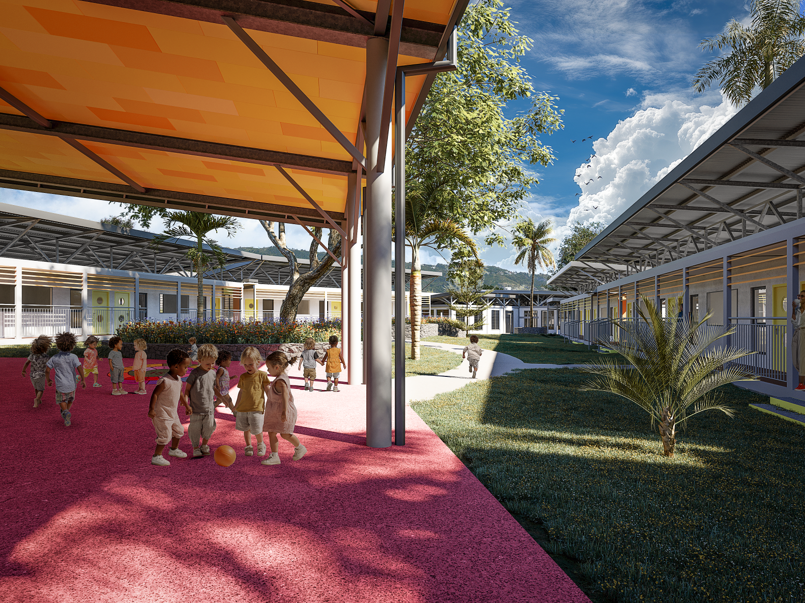 Conçu pour accueillir les élèves dans de bonnes conditions pendant la durée des travaux, ce groupe scolaire s’inscrit également dans la démarche de l’École du Bonheur portée par la ville de Saint-Denis : des espaces pensés pour le bien-être des enfants, favorisant les apprentissages, l’ouverture sur l’extérieur et l’épanouissement de chacun.