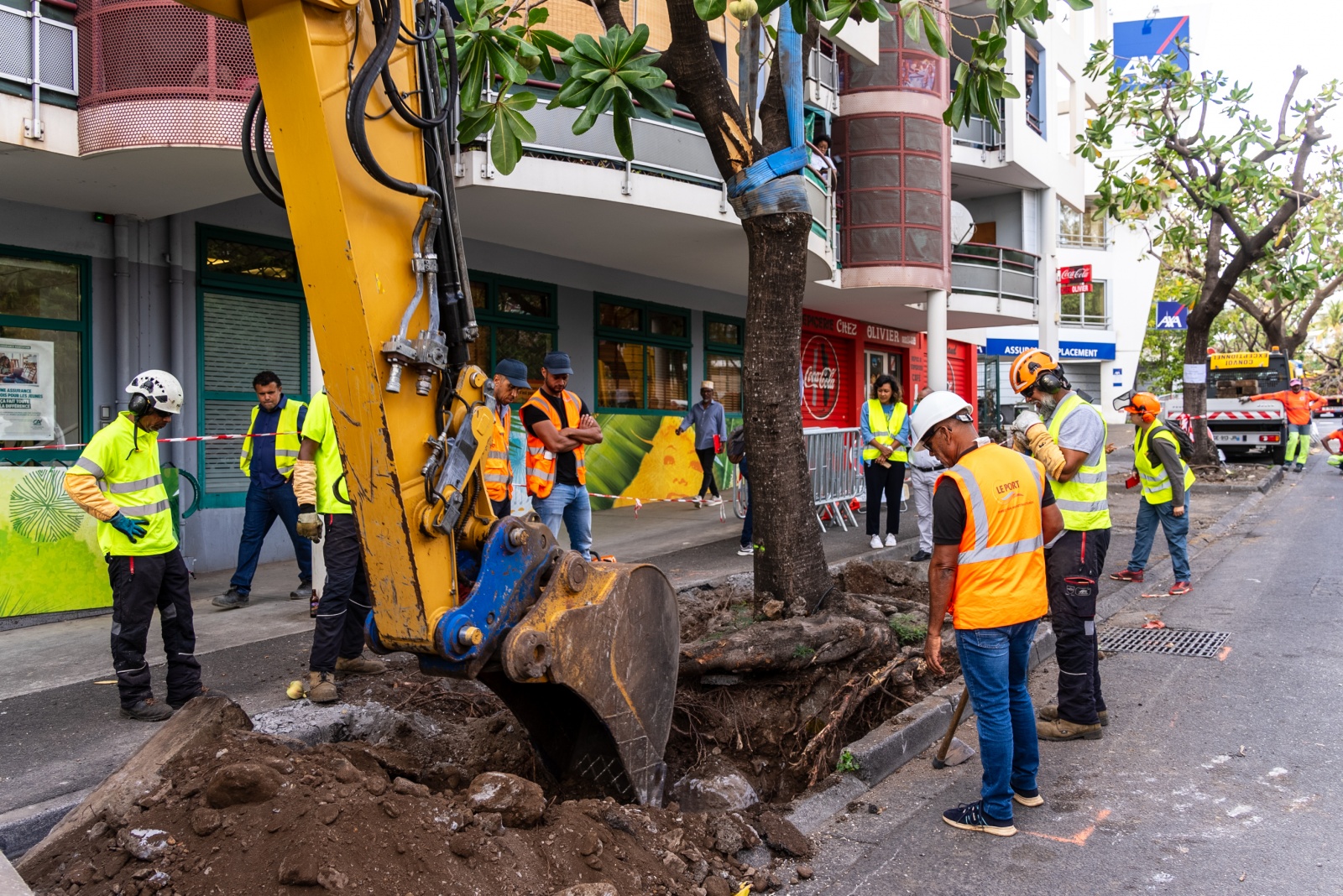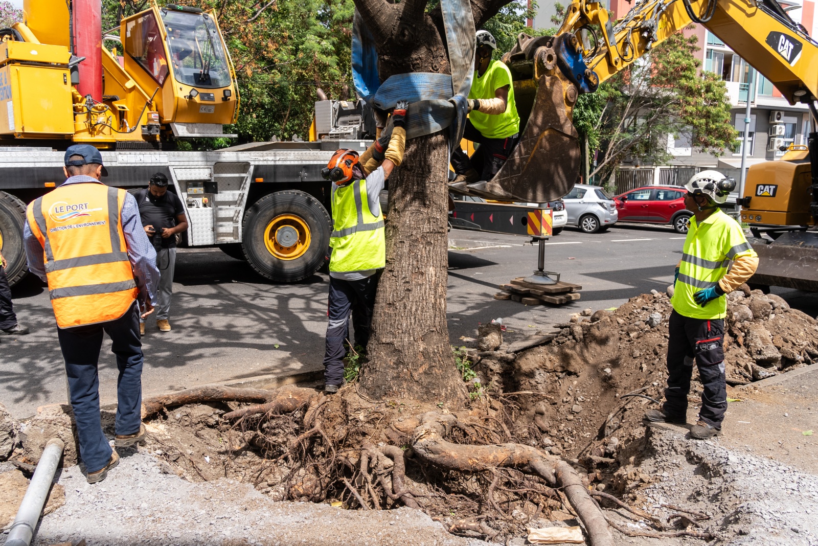 Ce mercredi 23 octobre, la ville de Saint-Denis dans la poursuite de sa transformation vers une ville verte et durable a transplanté plusieurs badamiers de l'Inde, tout le long de la rue des Poivriers. Ces derniers ont été déplacés vers le parc urbain Jean-Pierre Esperet, au Coeur Vert Familial, où ils pourront jouir d'une seconde vie. Nous publions le communiqué ci-dessous (Photo : ville de Saint-Denis)