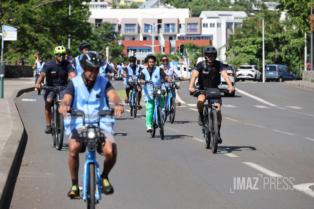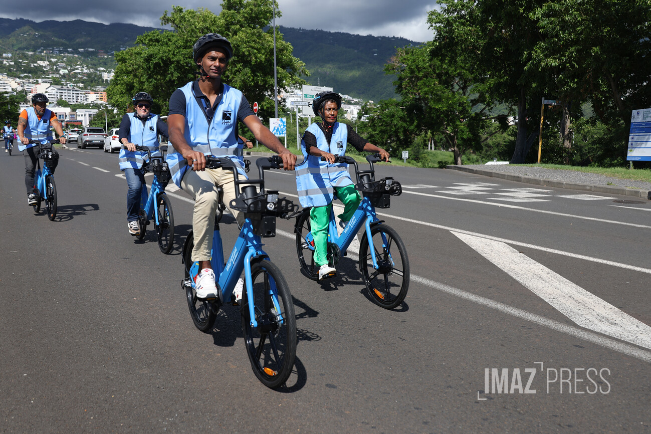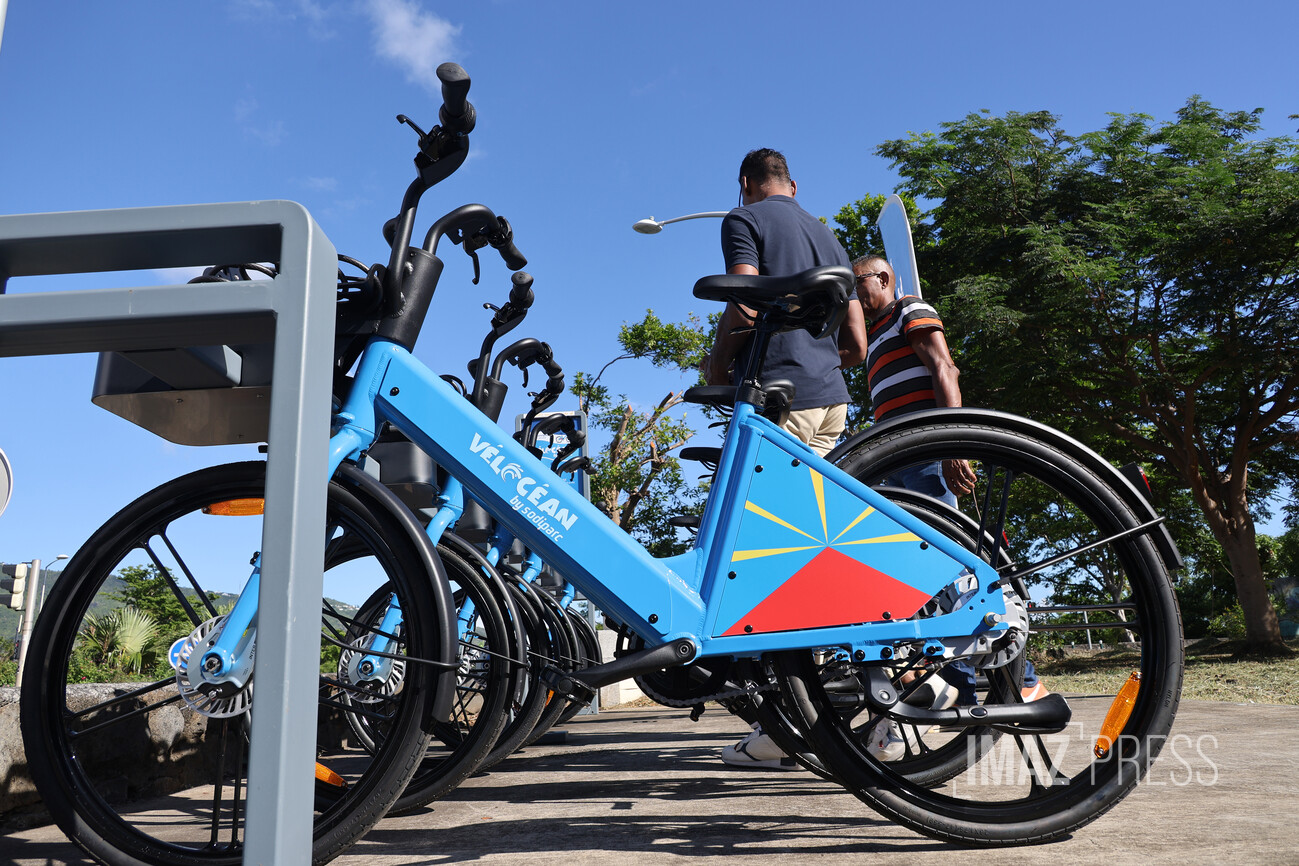 Ce vendredi 4 avril 2025, la ville de Saint-Denis et la Sodiparc inaugurent "Vélocéan", des vélos électriques en libre-service. L'objectif : encourager la population à laisser leur voiture pour des modes de transport plus doux. (Photos sly/www.imazpress.com)