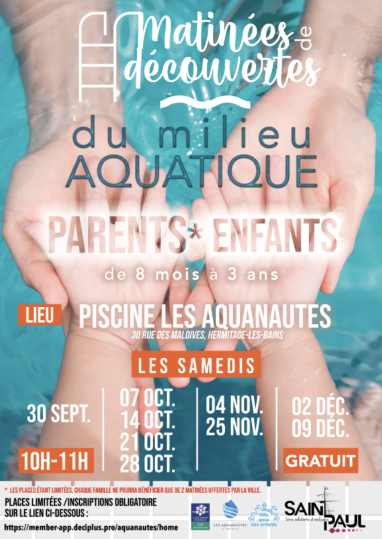 À l’approche de l’été, les matinées aquatiques reviennent sur le territoire de Saint-Paul. La commune invite donc les parents à participer au rendez-vous des “Matinées de découvertes du milieu aquatique” qui se tiendront à la piscine les Aquanautes à l’Hermitage.