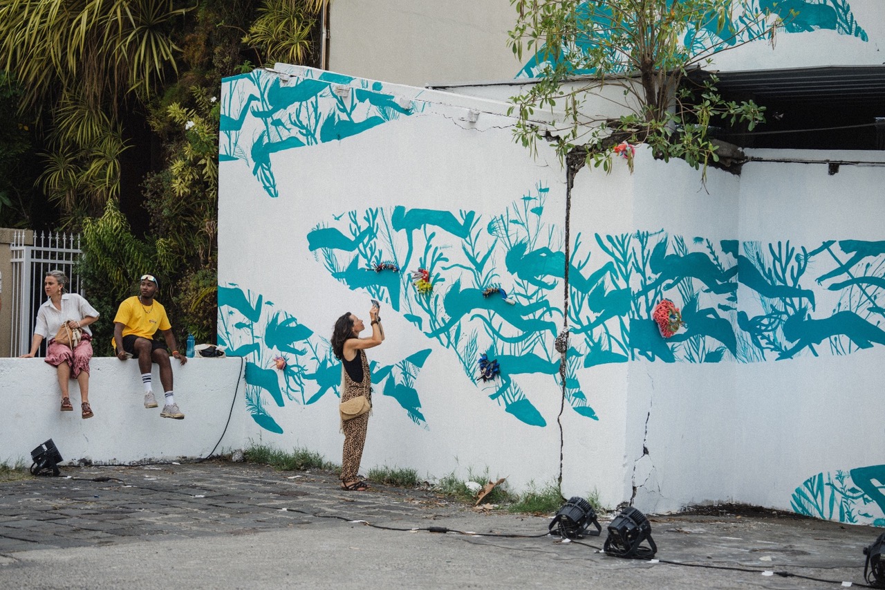 Un autre regard sur le vivant se dessine avec Fragile, à retrouver sur le parking entre la longère Sudel Fuma et l’arrière du parking Vapiano. Création commune de David de La Mano et Mona Luison, l’œuvre associe peintures murales et sculptures en matériaux recyclés pour interroger la beauté et la vulnérabilité du vivant. Inspirée de la faune et de la flore réunionnaises, elle imagine un monde où milieux terrestres et aquatiques s’hybrident. "De cet entre-deux naissent des créatures chimériques : coraux, algues, animaux et fragments humains. Espèces disparues, menacées ou emblématiques s’y entremêlent, composant un paysage organique, coloré et foisonnant", explique Réunion Métis. "Fragile célèbre l’interconnexion des écosystèmes, tout en rappelant la fragilité des équilibres et la mémoire des espèces perdues".
