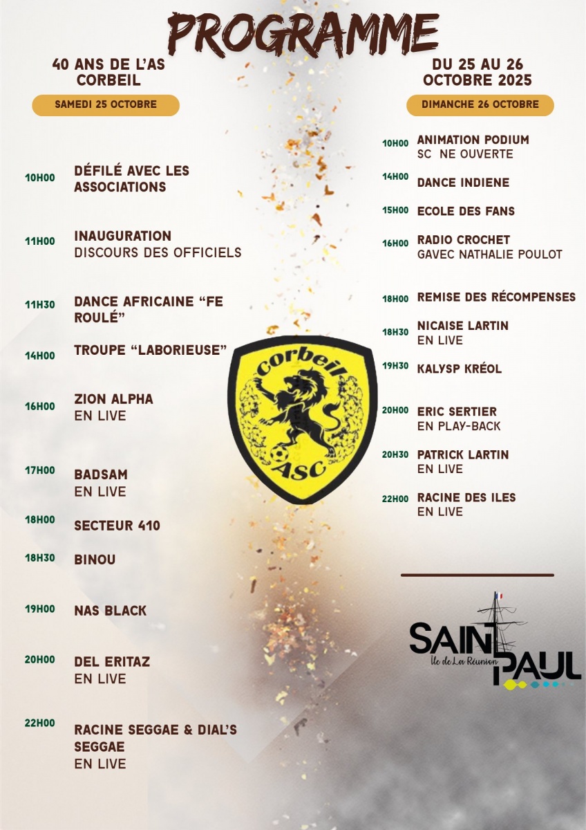 La grande fête des 40 ans se tiendra les 25 et 26 octobre 2025, une programmation riche et variée pour les habitants du quartier et les adhérents du Club. Début des festivités le samedi 25 octobre 2025, avec un défilé des associations le matin, puis un concert de Secteur 410 à 18h, suivi de Nasblack à 19H. Le dimanche c'est Racine des Îles qui clôturera ce week-end de fête. Nous partageons ci-dessous le programme de la fête du club. ( Photo : D.R)