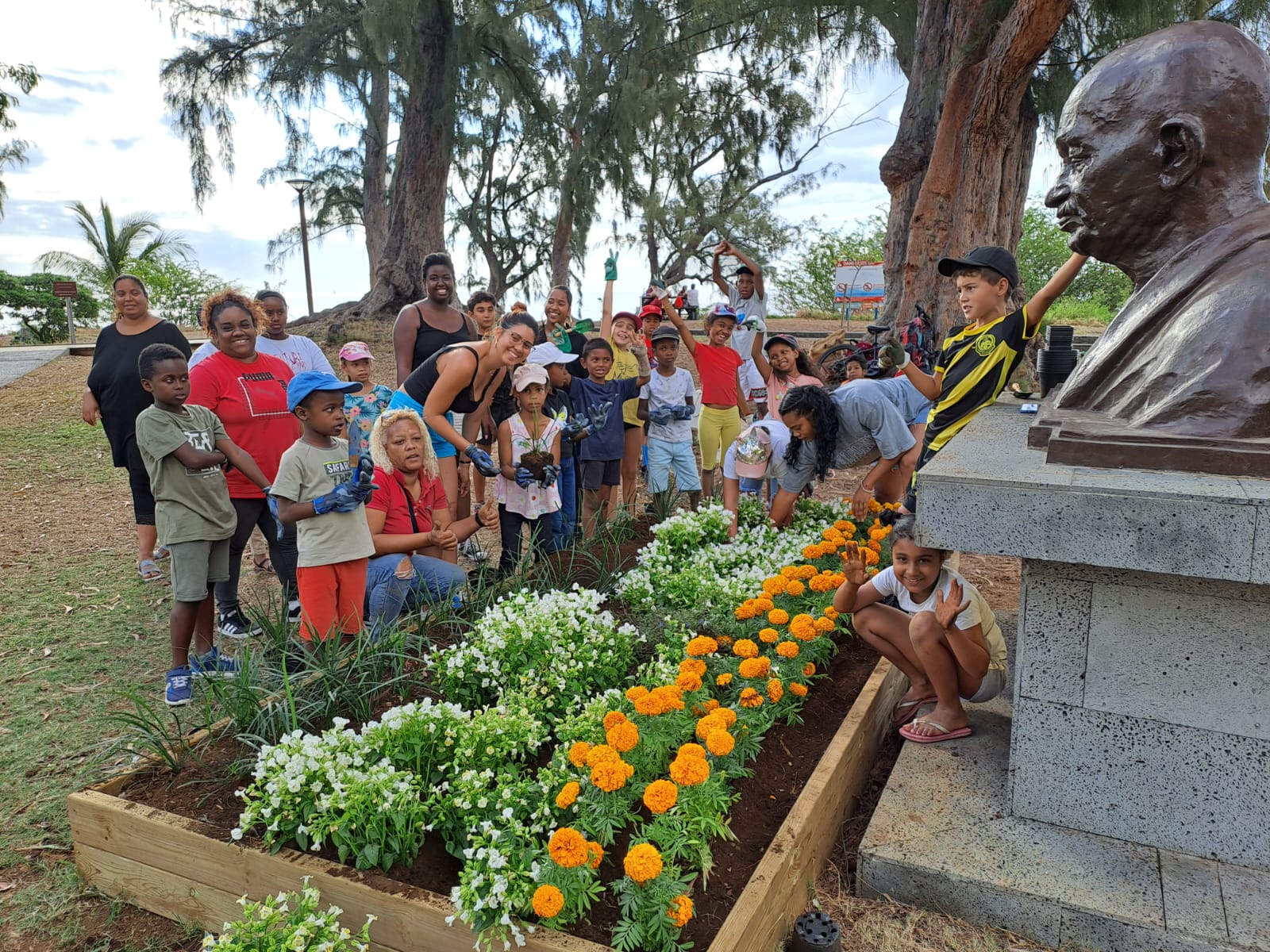 Ce lundi 2 octobre est une journée historique, car elle marque à la fois la Journée Internationale de la non-violence et le "Gandhi Jayanti", célébrant le jour de naissance de Gandhi en 1869. Dans ce contexte, les enfants de la garderie "Les Petits Boucaniers" et le service biodiversité de la ville ont retroussé leurs manches pour embellir le jardin de Gandhi sur le front de mer de Saint-Paul.