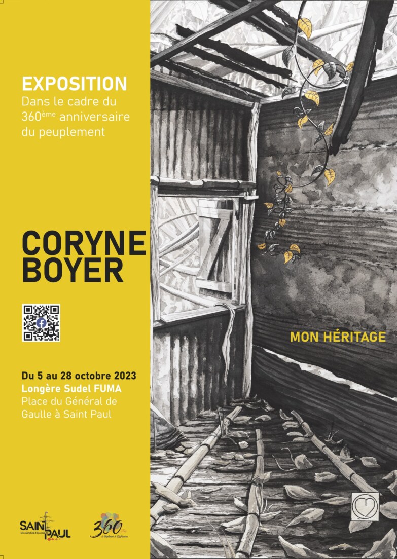 Du 5 au 28 octobre à l'espace culturel Sudel Fuma a Saint-Paul, a lieu l'exposition de Coryne Boyer nommée "Mon Héritage". Une exposition qui a lieu dans le cadre du 360ème anniversaire du peuplement de La Réunion.