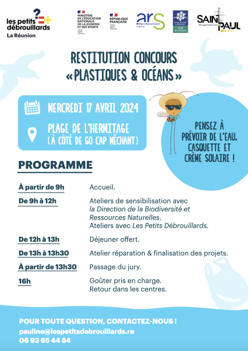 Ce mercredi 17 avril 2024, à partir de 13 heures, a lieu sur la plage de l'Hermitage (à côté de Go Cap méchant), le concours "Plastiques et Océans" organisé par la ville de Saint-Paul. 62 enfants et 10 animateurs seront présents. Nous publions ci-dessous le communiqué de la municipalité. (Photo photo RB/www.imazpress.com)