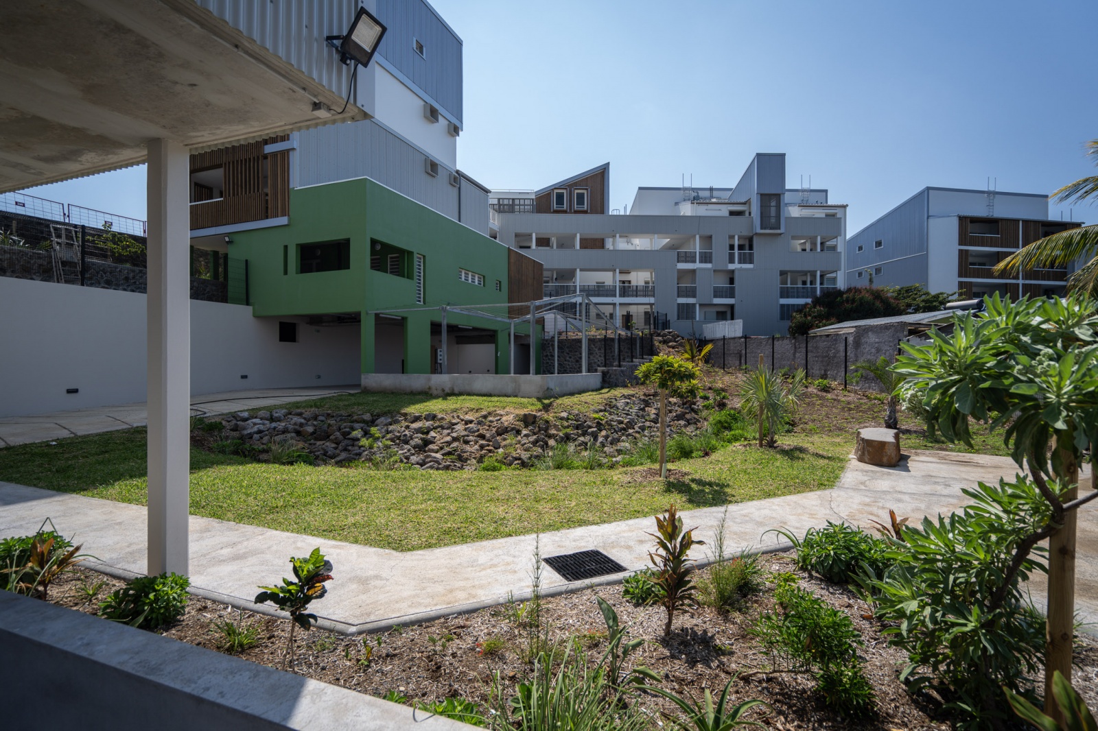Une attention particulière a été apportée aux espaces extérieurs avec quelques jardins privatifs, des espaces végétalisés, des grandes jardinières à planter avec un composteur intégré, ainsi que de 2 vergers déjà plantés d’arbustes fruitiers et de plantes culinaires.
