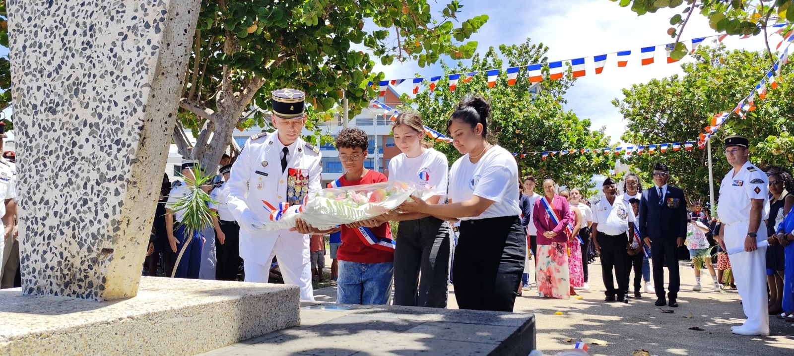 Ce mardi 11 novembre, la ville de Saint-Pierre a commémoré l'Armistice sur la Place de la Victoire. Le maire, David Lorion, a présidé le dépôt de gerbe, entouré du sous-préfet, Jean-Paul Normand, d'Émeline K/Bidi, la députée de la 4e circonscription et la sénatrice, Évelyne Corbière. Nous partageons la publication de la ville de Saint-Pierre : (Photo ville de Saint-Pierre)