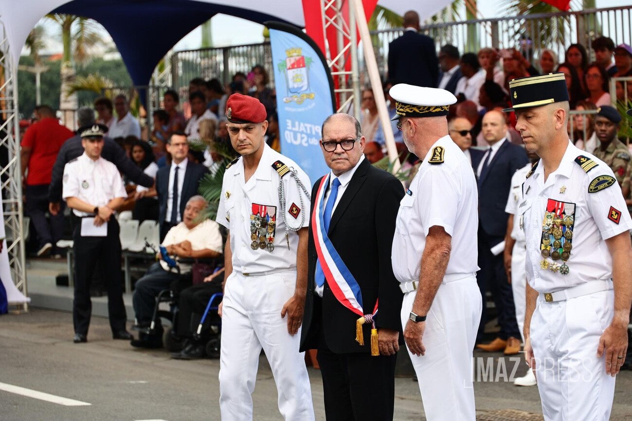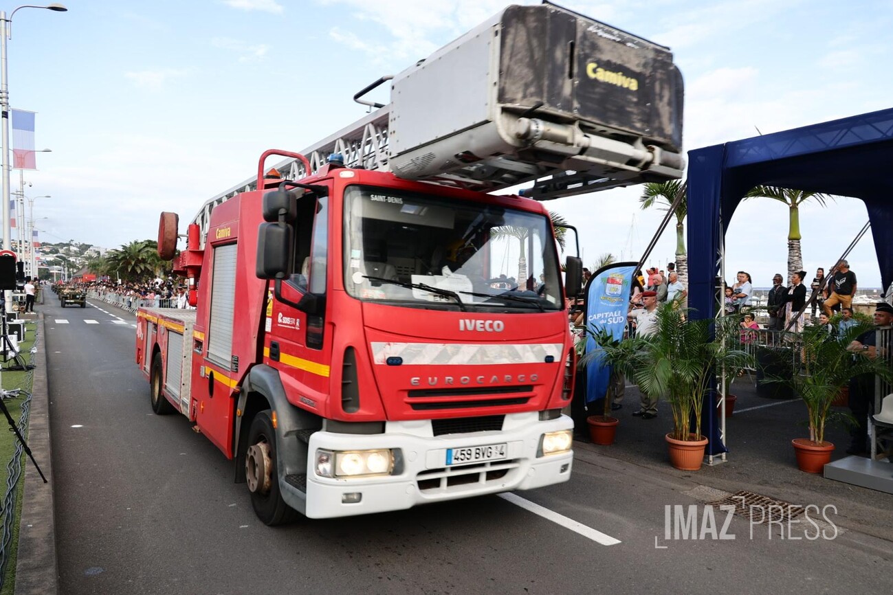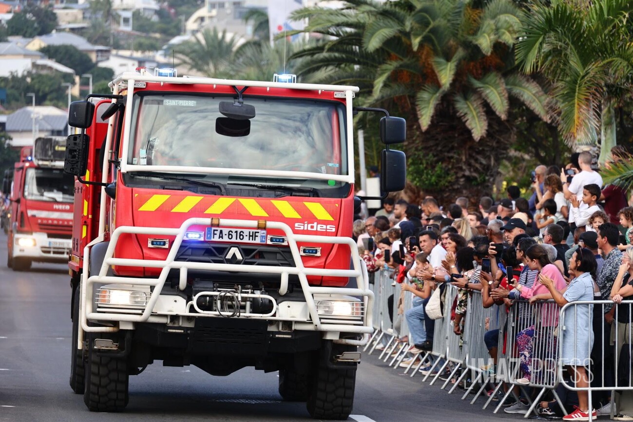 Ce dimanche 13 juillet 2025, la ville de Saint-Pierre a célèbré avec un petit jour d'avance la fête nationale. Dès 16h30, les militaires ainsi que de nombreuses associations de la commune et les pompiers ont marché au pas cadencé sur le front de mer. Le défilé a été suivi de plusieurs animations et concerts. Un feu d'artifice sera lancé en fin de soirée à 22h (Photos : yh/www.imazpress.com)