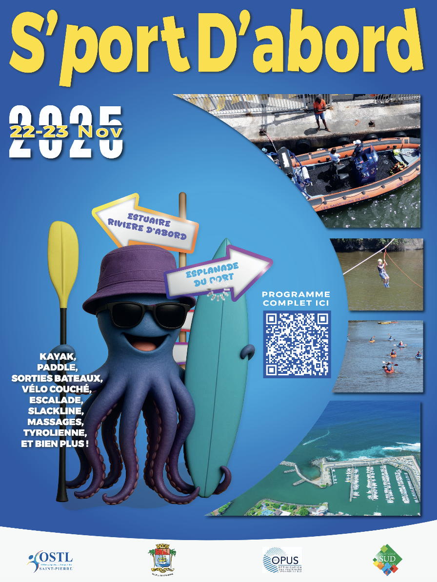 Les samedi 22 et dimanche 23 novembre 2025, le port de Saint-Pierre et l’estuaire de la rivière d’Abord, accueilleront l’événement "S’port d’Abord". Organisée par l’Office des sports et du temps libre (OSTL), la ville de Saint-Pierre, SPL OPUS et Destination Sud Réunion, cette manifestation a pour ambition de faire découvrir de nouvelles activités sportives, de valoriser les sports nautiques et de nature accessibles toute l’année, comme l'indique le communiqué publié ci-dessous (Photo : rb/www.imazpress.com)