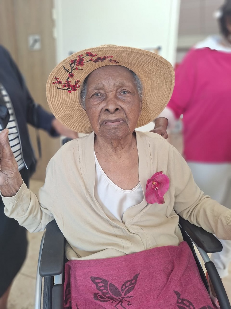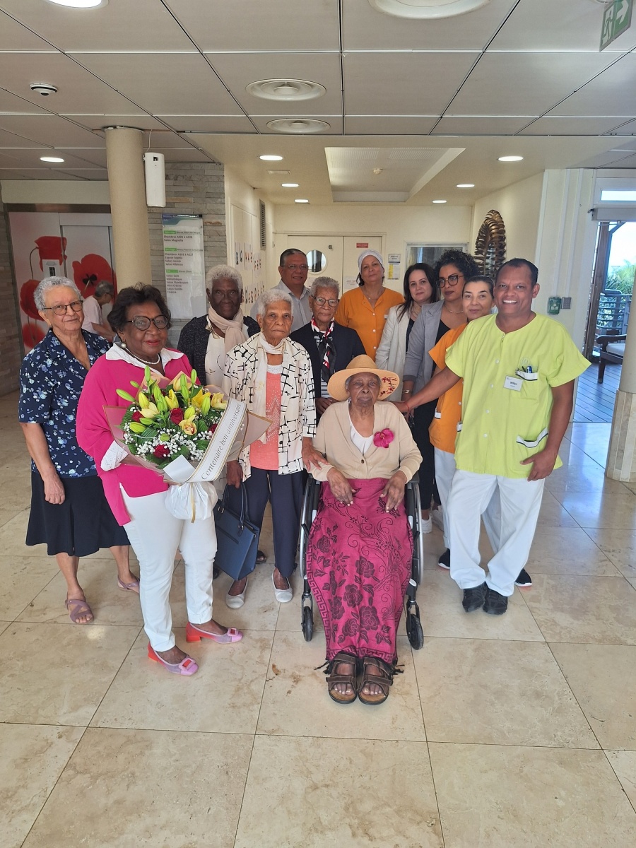 Marie Louise Bouvillon a célébré ce week-end ses 105 ans à Saint-Pierre. Entourée de sa famille et de ses proches, la centenaire a soufflé ses bougies dans une ambiance émotive et chaleureuse. L’occasion de saluer une vie longue et riche en souvenirs (Photo : ville de Saint-Pierre).