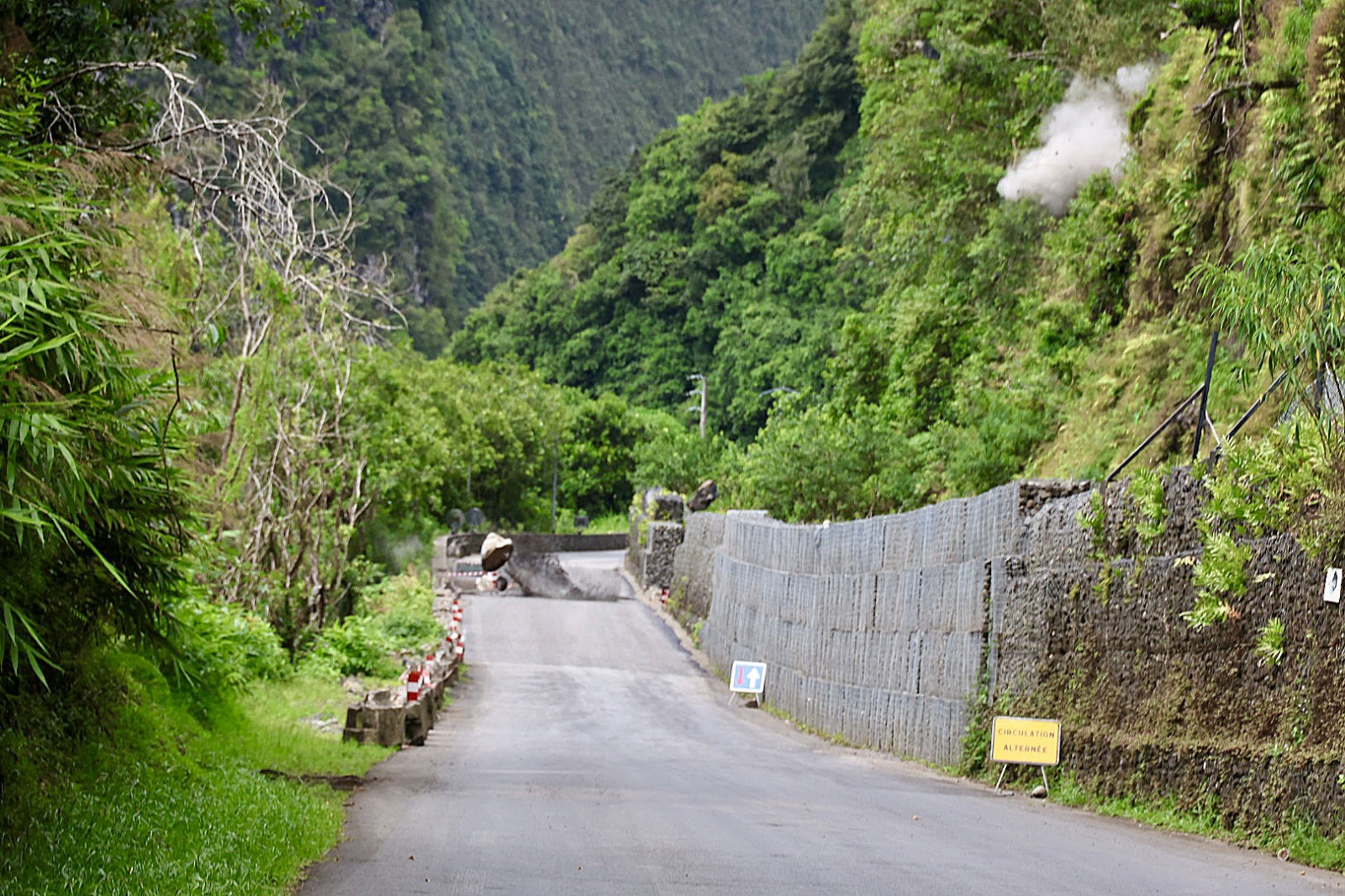 Les travaux n'en finissent plus sur la route de Salazie. Depuis ce mardi 28 novembre 2023, 8 heures, la route est totalement fermée à la circulation. Et pour cause, des travaux de purges doivent être menés. 200 tonnes de blocs menaçant la chaussée vont être enlevées. Le temps d'une journée donc, le cirque de Salazie sera totalement coupé du reste de La Réunion. Mais si les travaux se déroulent comme il se doit, la route devrait être rouverte à 18 heures ce soir (Photo d'illustration : sly/www.imazpress.com)