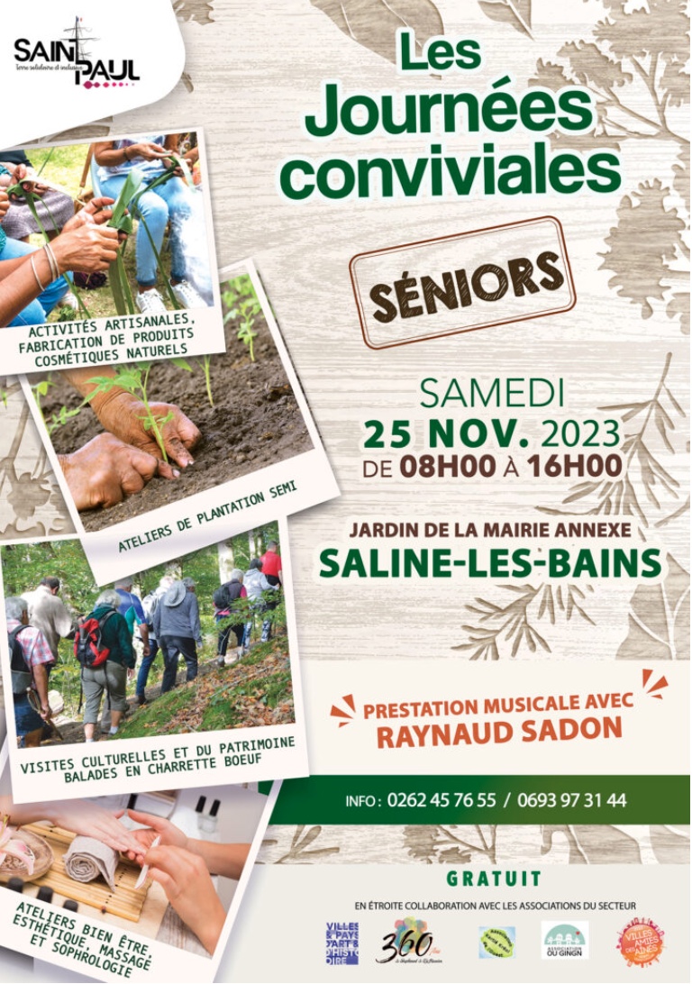 Journée conviviale pour les seniors et leur famille au programme de ce samedi 25 novembre 2023 dans le Jardin de la Mairie Annexe de la Saline-les-Bains de 08h00 à 16h00. Plusieurs animations sont prévues avec des balades en charrette bœuf, des ateliers de plantations ou encore des fabrications de produits cosmétiques naturels. Nous publions le communiqué de la mairie de Saint-Paul ci-dessous.