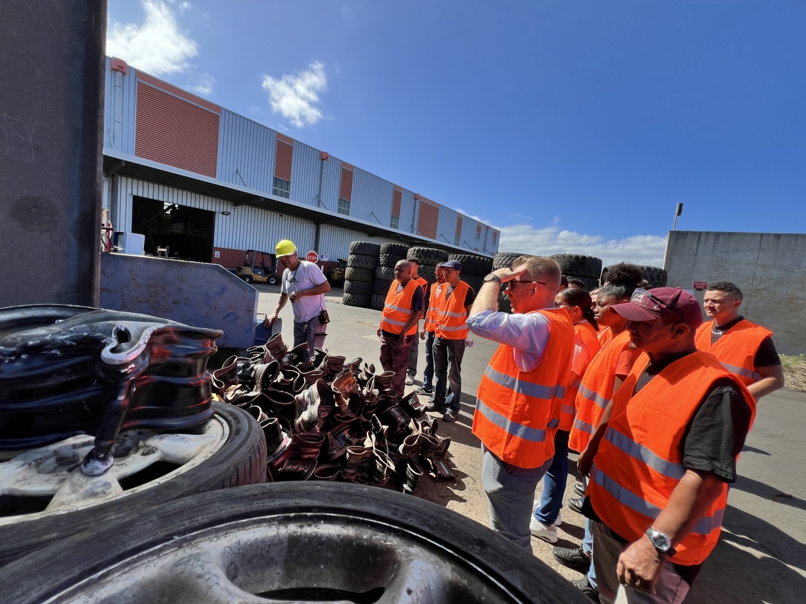 Le Territoire de l'ouest et France travail La Réunion s'associent afin de créer "des passerelles entre industries de la zone et demandeurs d’emploi". Cette semaine du 18 au 22 novembre 2024 au Port, un groupe de 15 jeunes a ainsi découvert les métiers de Solyval, entreprise récupération et de valorisation de pneus usagés. Selon le Territoire de l'ouest, ils sont plusieurs à souhaiter candidater au sein de la société. Nous publions le post ci-dessous. (Photo : Territoire de l'Ouest)