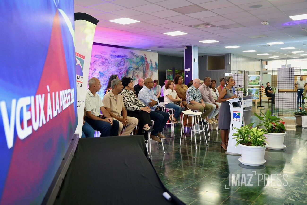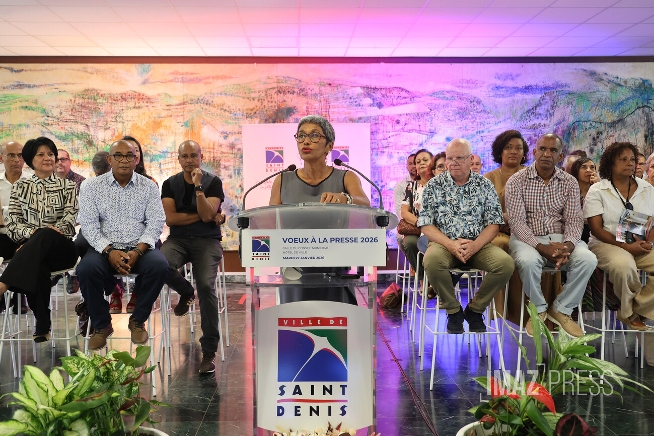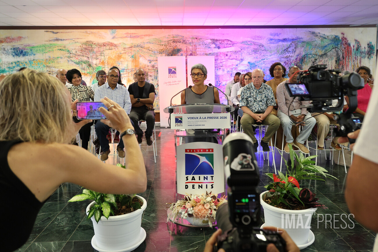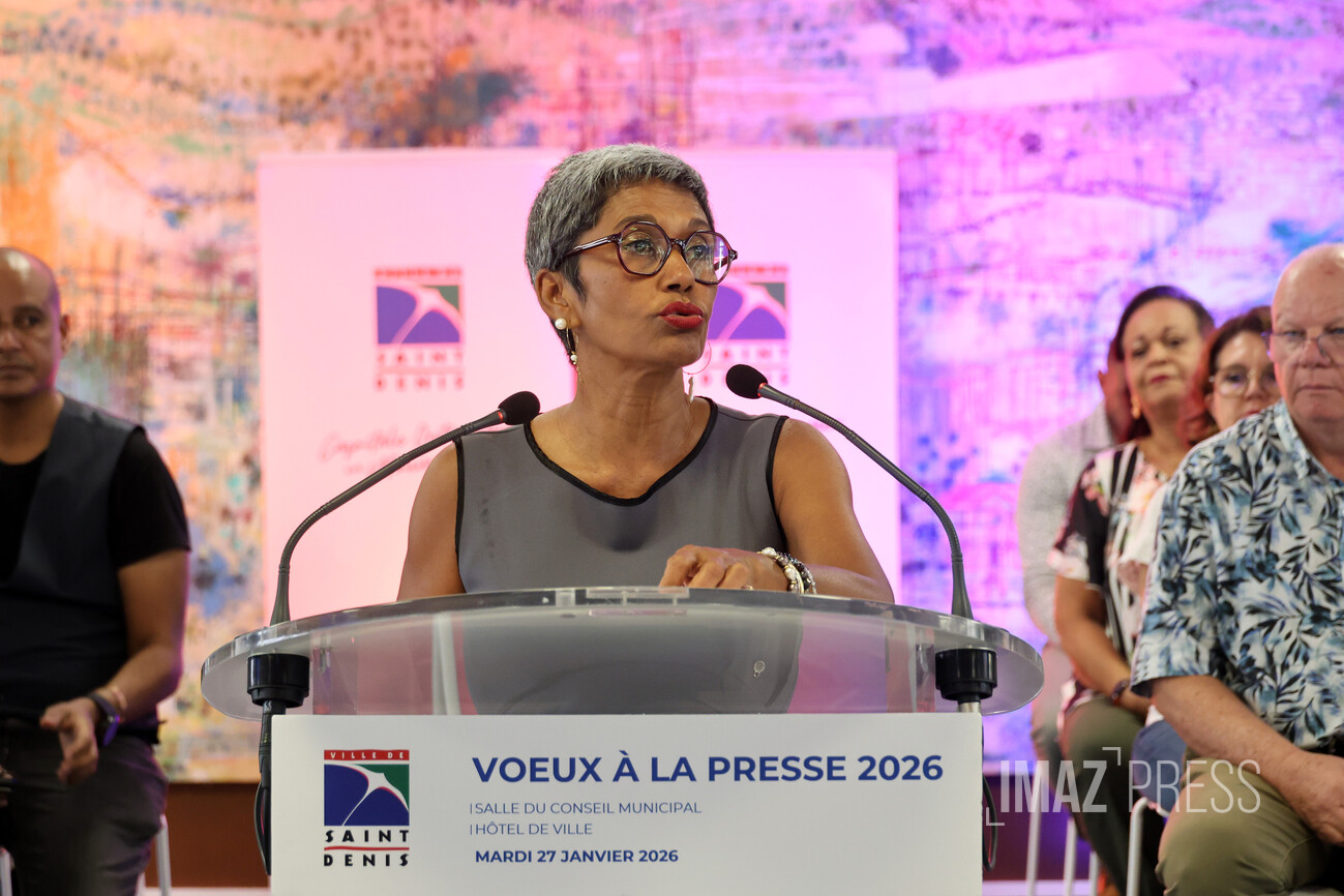 (Actualisé) Ce mardi 27 janvier 2026, la maire de Saint-Denis, Ericka Bareigts, a présenté ses traditionnels vœux à la presse, entourée des élus de la commune dionysienne. Elle a dressé un panorama des enjeux internationaux, nationaux et locaux, tout en réaffirmant les priorités de la ville. Le premier édile appelle à la lucidité, à la paix et à la responsabilité collective. (Photos sly/www.imazpress.com)