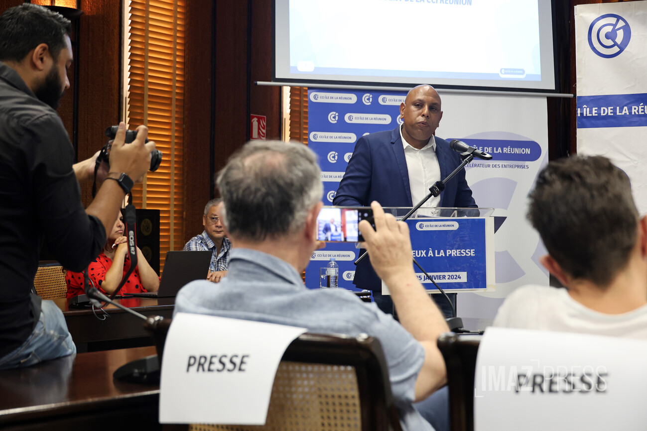 C'est un message inquiet mais résilient que le président de la Chambre de commerce et d'industrie (CCIR), Pierrick Robert, a adressé aux élus et à la presse ce jeudi 25 janvier 2024. Après une année 2023 particulièrement compliquée pour les entreprises, 2024 ne s'annonce guère mieux, et est "l'année de tous les dangers" selon Pierrick Robert (Photo sly/www.imazpress.com)